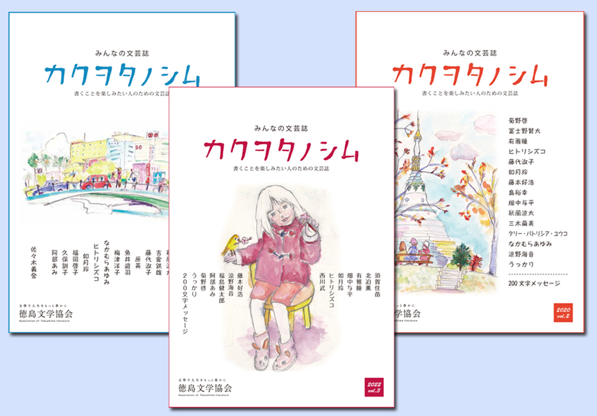 会員の皆様の優秀作品をプロの作家と同じ誌面に無料で掲載しようというコンセプトで2018年5月1日に創刊いたしました。1号から6号までは、芥川賞作家やプロの文学者を筆者に招き、地方の文芸誌としては類を見ない商業雑誌に匹敵するクオリティの雑誌となっています。7号からは、会員の皆さまの優秀作品や徳島ゆかりのプロの歌人・俳人などの作品を中心に、全国の同人誌で活動する若手作家にも依頼、あらたな同人誌として編集しています。また、四国大学の高校生のための文学賞「富士正晴全国高校生文学賞」や「瀬戸内寂聴青春エッセイコンクール」の受賞作も掲載しています。