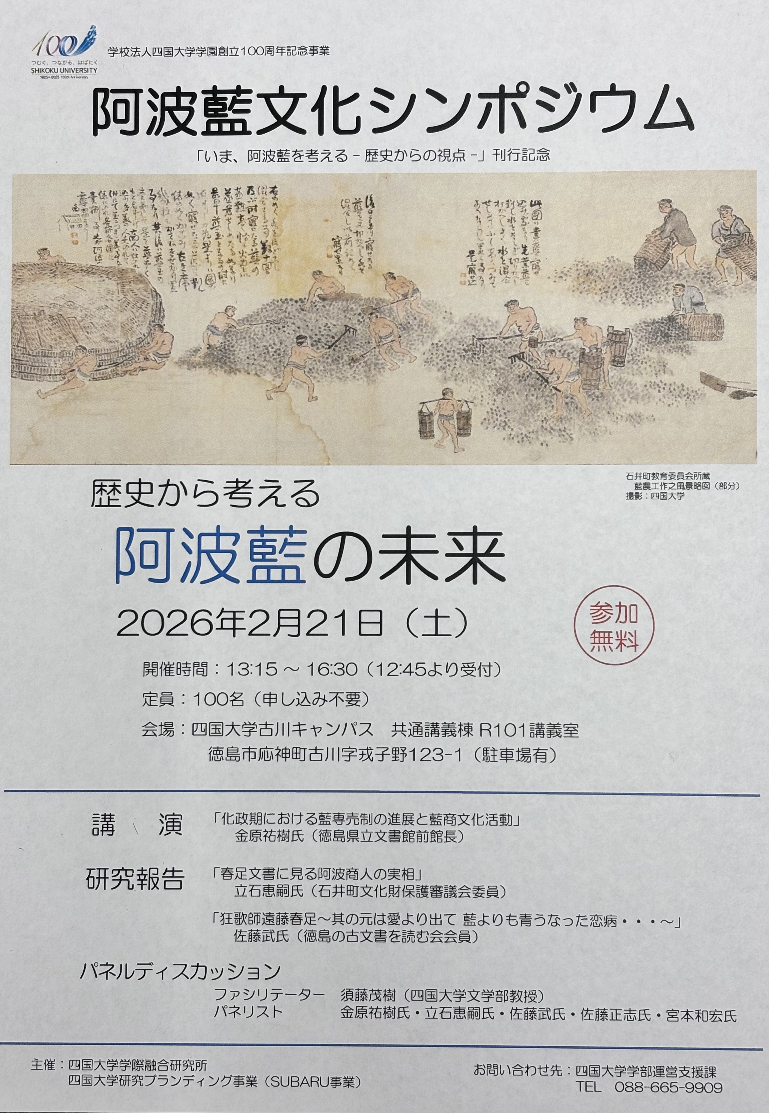 日本文学科の須藤茂樹先生編集の『いま、阿波藍を考える ─歴史からの視点─』が出版されました。本書は様々な資料から阿波藍の歴史を解き明かすというもので、歴史から学び未来に向けた提言もなされるという充実した内容になっています。2月21日(土)には「阿波藍文化シンポジウム」も四国大学にて開催されます。参加費無料で申し込みも不要です。