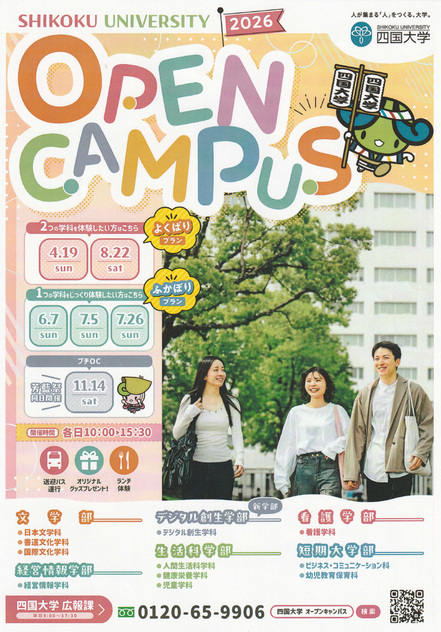 四国大学では毎年、春から夏にかけてオープンキャンパスを実施しています。その日程が決まりました。